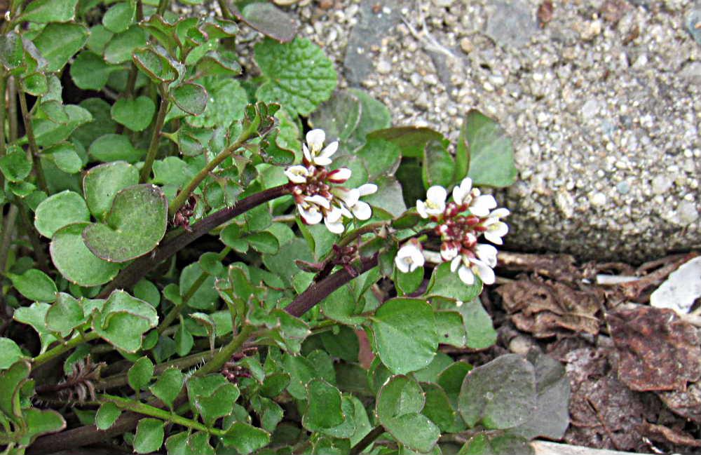 タネツケバナ(種漬花[10][11]・種付花[10]、学名: Cardamine occulta)はアブラナ科タネツケバナ属の植物の一種。水田などの水辺に群生する雑草。和名の由来は、イネの種籾を水につけて発芽の準備を促す苗代作りのころに白い花を咲かせることから「種漬け花」と名付けられたといわれる[11][12][13][14]。別名、タガラシ、ミズガラシ、コメナズナともよばれる[13]。中国植物名は、湾曲砕米薺(わんきょくさいべいせい)