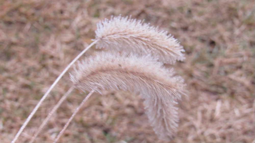 今朝は昨日の天候とはうって変わって雪が降っています 昨日は氷点下まで気温が下がり霜がふりました 枯れた「エノコログサ」が霜で真っ白に覆われふさふさと白い毛に覆われているようでまさに別名の「ネコジャラシ」にぴったりです 天候は徐々に暖かくなり霜は消えてしまいました 秋にできる実は雑穀のアワの原種であり江戸時代には粥や飯として利用されたとか 炙ると香ばしいするそうです