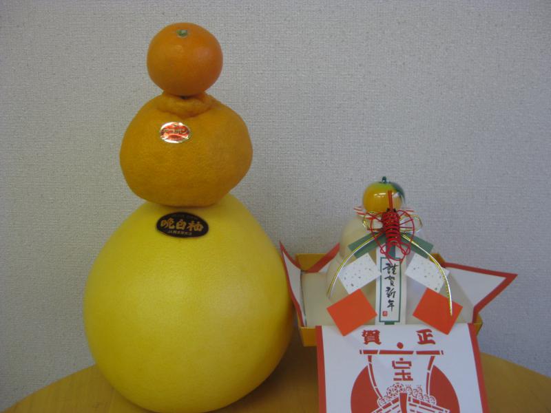 鏡餅やお正月飾りには、おめでたいフルーツの橙(だいだい)が飾られるわけですが、楽しい鏡もち?を作ってみました。同じ柑橘類でも一番大きな晩白柚(熊本産)二段目にはデコポン(鹿児島産)そして上段には、葵クラブみかん(和歌山産)。フルーツは、やっぱり美味しくて、楽しい!今年もとことん、フルーツを楽しみたいのが、フルッティアです。