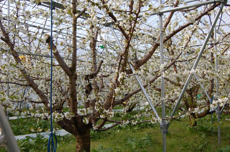 母の日に最盛期を迎える温室さくらんぼの花が見頃です!