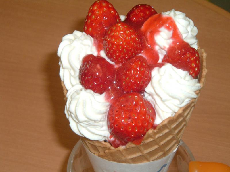 定評のある、手作り苺ソース、勿論生クリーム、アイスクリームも自信あり。