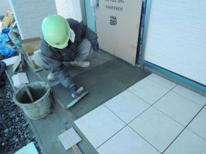 玄関のタイル貼りは、目地詰めを残して終了しておりました。