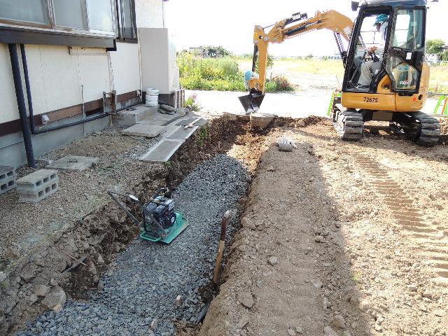 掘削後、砕石を敷いていきます。