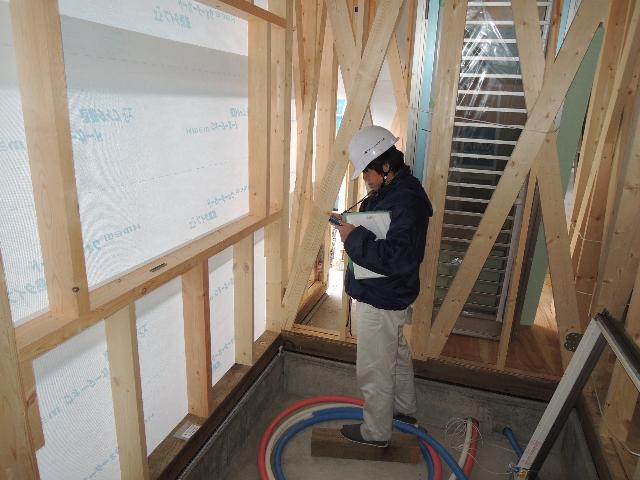 検査員は同じ方ですが、『ハウスジーメン』・『ホームリサーチ』それぞれの検査項目に添って細かく検査して頂きました。『ホームリサーチ』で検査して頂いた内容は、後日、写真を製本し、お施主様にお渡し致します。