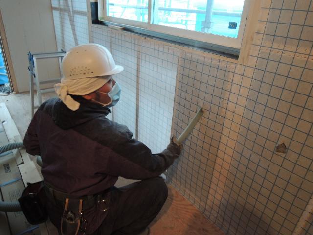 昨日から、壁の断熱工事をおこなっております。