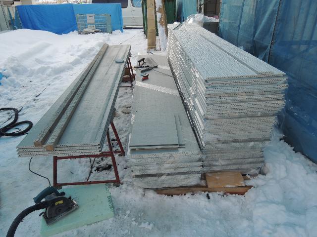 土台水切りを付け、早速北面から施工開始です。