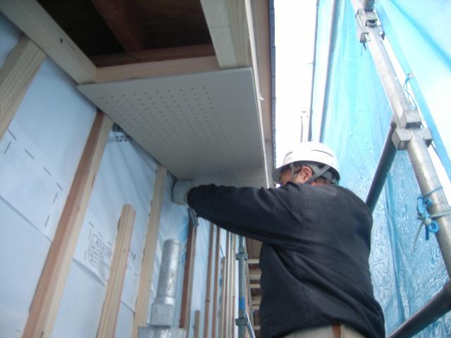 ▼河北町H団地 HA様邸新築工事-26 軒天貼り 『テクノストラクチャーで建てる山形の長期優良住宅』