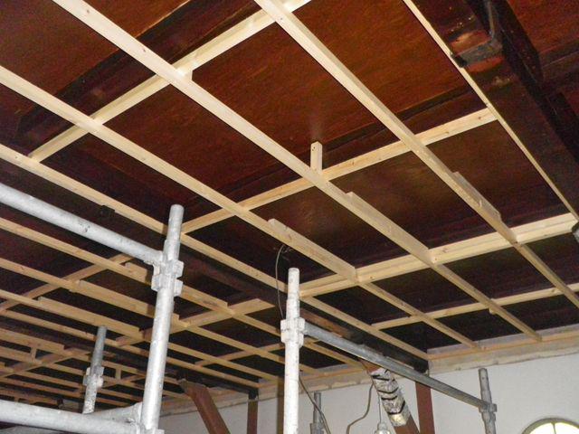天井の下地組立を大工さんが進めております。