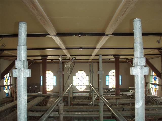 しばらく見ない間に天井化粧梁の造作が完了したようです。