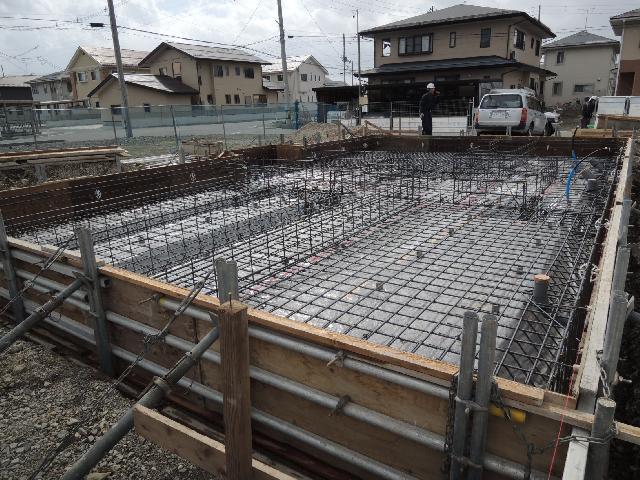 6日から乗り込みとなった基礎の配筋が完了し、本日は、住宅瑕疵保険「ハウスジーメン」・任意の品質検査「ホームリサーチ」の配筋検査をして頂きました。