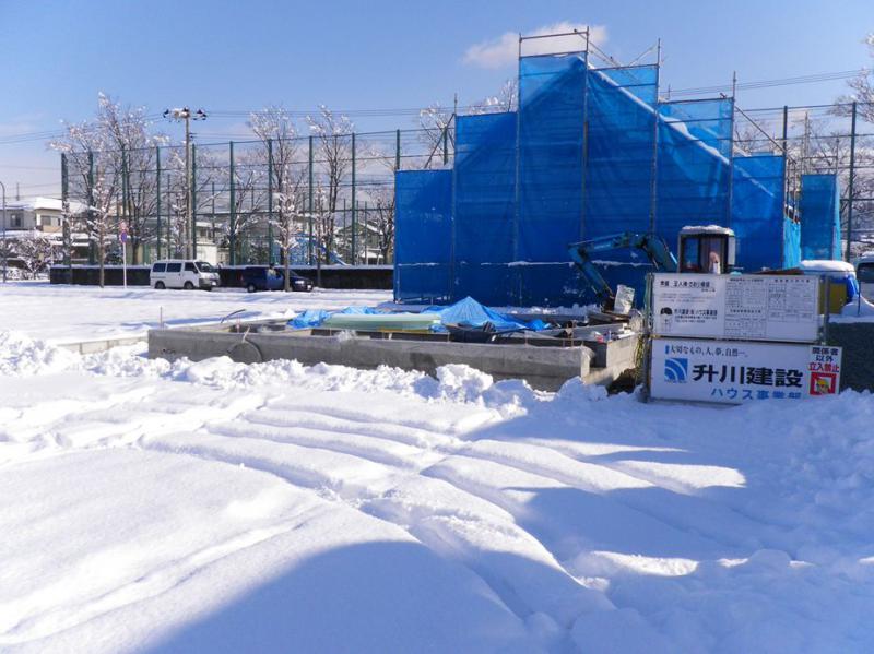 雪に負けず基礎工事、頑張っています。