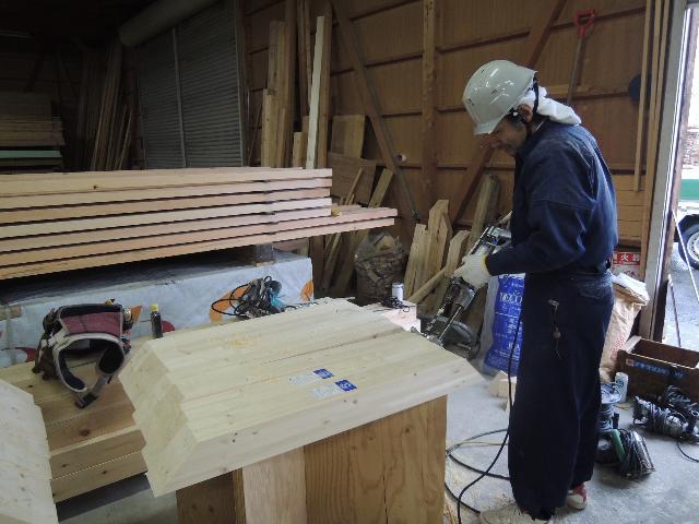 いつものように、材木やさんの加工場で加工作業です。
