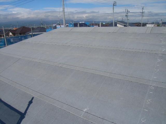 屋根の下葺き(ゴム系ルーフィング)完了です。これで雨でも安心です!