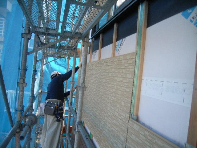 外壁は急ピッチで貼り進んでおります。