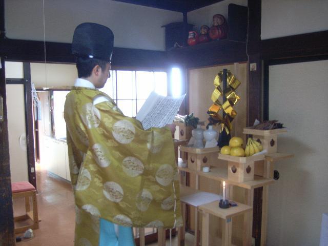 解体前に湯殿山神社 神主様より、お世話になったお家や神様に感謝し、解体工事が無事に終了するように祈願して頂きました。