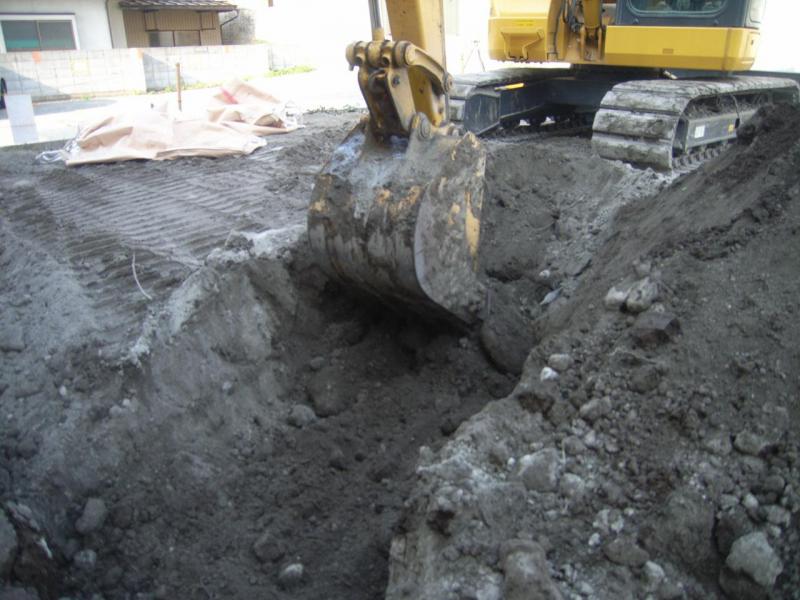 基礎 耐圧盤の下、約1mの土をセメントと撹拌し表層改良を行います。