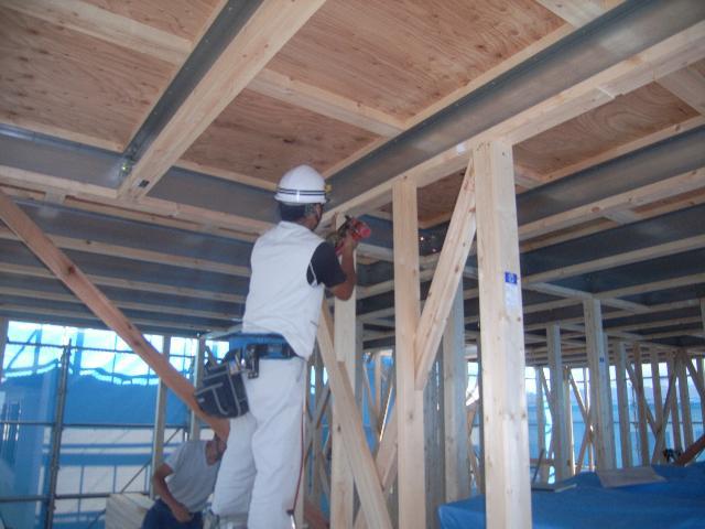 2階の筋交いが入れ終わったら、1階床合板を貼っていく予定です。