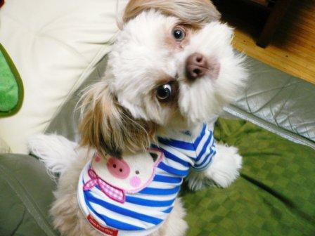 白と青の横縞の「子ぶたのジョニー」のティシャツです。