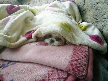 肌寒い朝は、毛布を頭からすっぽりかぶって、暖かぁ・・って感じです。