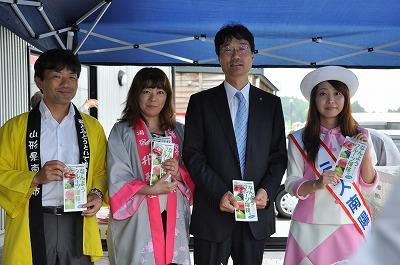 16日土曜日、市の商工観光課・旅館組合・ミス南陽の4人で、燕市と新潟のふるさと村にさくらんぼキャラバンで行って参りました。