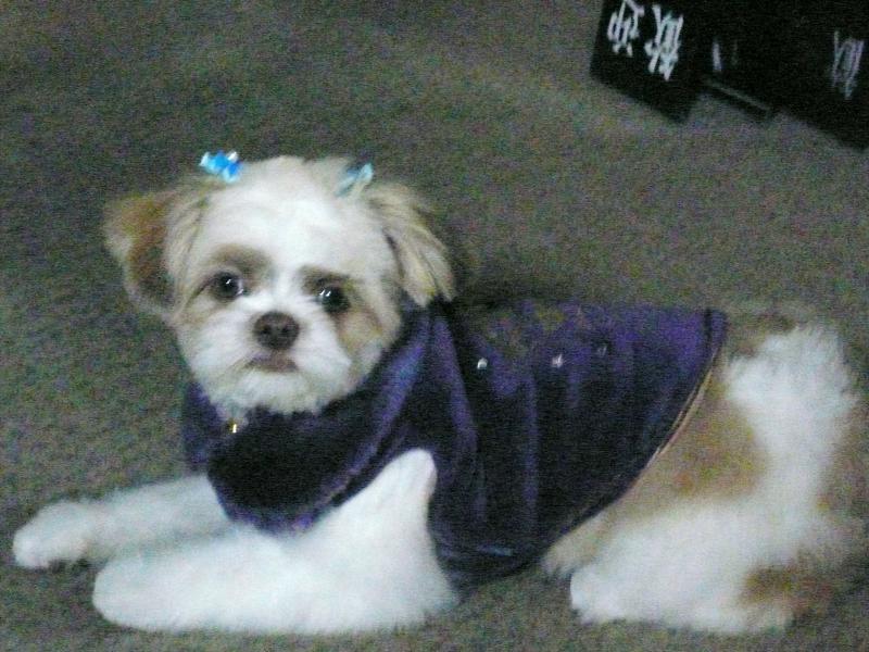 いかがでしょう?頭に青いリボンをつけてもらって「スピア」はご機嫌です。