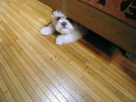都合が悪くなると、机の下とか、テーブルの下に隠れてしまいます。