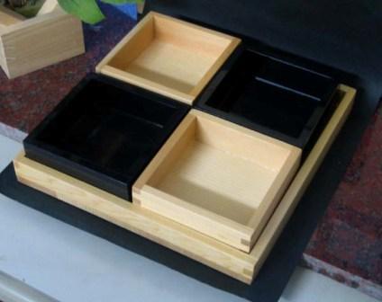 大きい升皿に、小さい升皿が4枚 何を盛り付けるか、今、板長が考案中です。