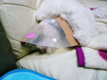 首に付けたカーラーがどうも邪魔ならしく、一生懸命取ろうともがくのですが