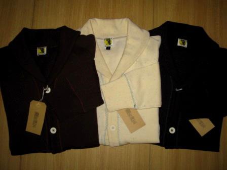 ショール・カラーのフル・ボタン・カーデに仕上げてあります。