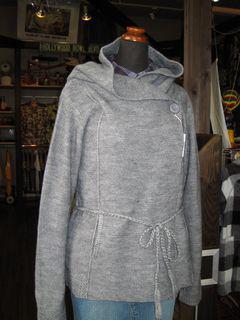 ※前を空けて着たらきれいなAラインのフーデッド・コートのようにも使えます