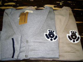 胸の刺繍ワッペンがポイントになっているVネック・カーデ