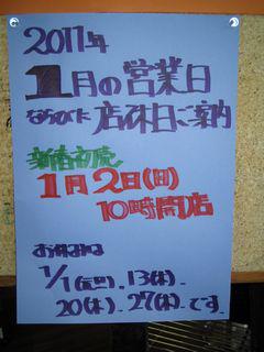 ▼2011年1月の営業時間ならびに店休日のご案内。