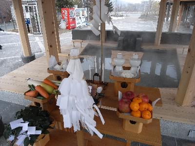 宮司さんの祝詞(のりと)が奏上され、天童温泉の隆盛とともに、足湯がいつまでもお客様に愛され、安全に利用されるよう参加者みんなで祈りました。