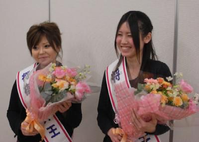 大勢の応募者の中から、女王の栄冠を勝ち取ったのがこのお二人。笑顔が魅力的な菊地さん(正面右)と高橋さんです。
