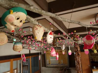 小正月の行事として、例年玄関ロビーにだんご木を賑やかに飾ります。