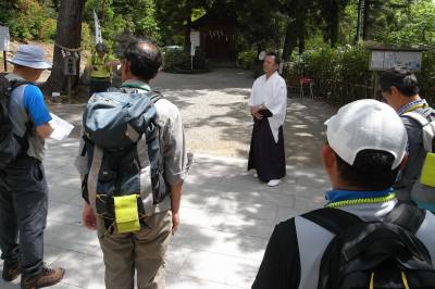 舞鶴山の中腹にある建勲神社では、宮司さんから歓迎のごあいさつと神社の由来を伺いました。