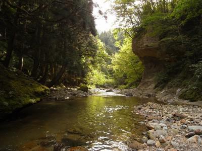 10月に入って、朝夕めっきり涼しくなり、庭の広葉樹の葉っぱも薄っすらと色づいてきました。紅葉狩りのメッカと言えば、その名のとおり「紅葉川(もみじがわ)渓谷」。山寺の先の面白山のふもとにあり、当館から車で30分で行くことができます。