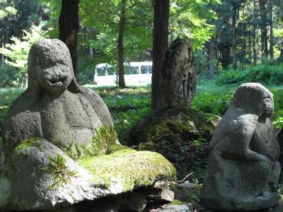 その参道を進んでいくと、時代を感じさせる「山姥」(やまんば)が迎えてくれます。二体とも江戸・寛政年間のもので、当時は女人禁制の修験の山に祀られることが多かったといいます。