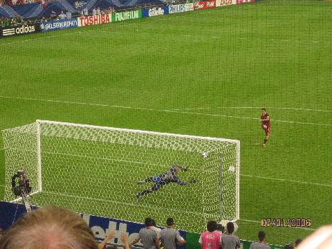 生まれて初めてPK決着をゴール裏で見ましたが、これは見ている方も本当に緊張しますね。特に失敗した選手の絶望感、それを拍手で迎え仲間を鼓舞するチームメートを見てチームスピリットに感動しました。結果はポルトガルがベスト4へ進出することになりましたが、負けた直後のイングランドサポーターの放心振りは印象に残りました。来週はFinalを見に行きます。またとない機会ですから、地元ドイツチームが優勝した時の昂奮ぶりを見てみたいものです。