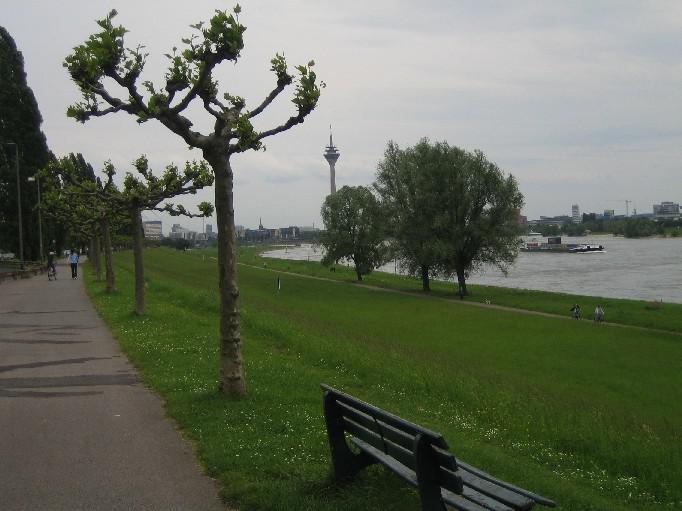 ライン川はスイスを起点としてドイツを南北に流れる大河川で、オランダを経て北海に注いでいます。中学の社会でも習ったような記憶があります。写真の川幅はせいぜい150m位ですが、大型コンテナ船が行き交うので水深は相当深いんでしょうね。