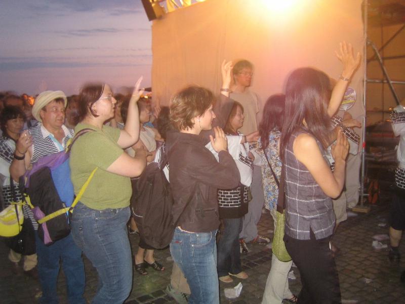 写真はクライマックス前のこれも恒例となった盆踊り。長々とドイツ語で盆踊りの踊り方を説明したあと、やおら日本人とドイツ人が入り乱れて盆踊りを踊り始めます。今年は東京音頭。この姿毎年のことながら結構笑えます。そしてフィナーレの名物花火の打ち上げ。これ程こった打ち上げ花火というものは中々ドイツというか欧州ではないんでしょうね。毎年楽しみにしているドイツ人が多いみたいです。打ち上げが始まる数時間前からライン川沿いの見晴らしの良い場所を確保して待機しています。これは日本の文化として誇って良いものと思います。