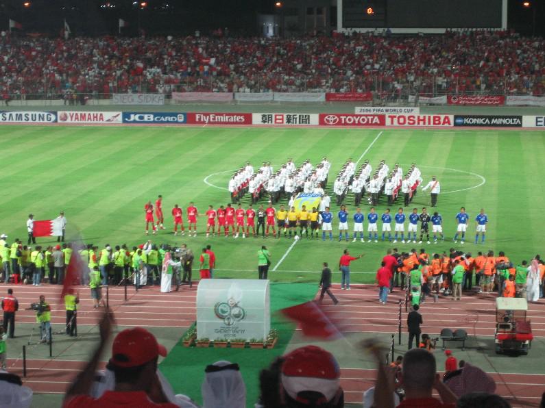 いやー興奮しました。小笠原のミドルシュート。我々が観戦したのは日本人サポーターのエリアとは別のVIPエリア。傍には控えの小野や、三浦(淳)も。周りは殆どバーレーン人で我々の盛り上がりは、かなり浮きまくり。それにしてもアウェーの雰囲気はこれほどまでに凄いのかと思いました。これは精神的にかなり不利ですね。試合開始前に大音響で流れるコーランを聞いているだけで気が滅入ります。そんな中での勝ち点3は本当に貴重です。次戦は中田、俊輔、サントスが出場停止になりますが間違いなく勝てるでしょう。