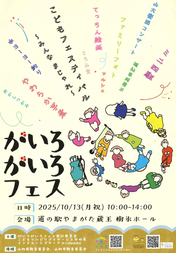 10/13は山形市の道の駅やまがた蔵王樹氷ホールで『がいろがいろフェス』が開催されます!みんなが楽しめる音楽やレースなど、嚥下食や福祉車両といった学べるコーナーとたくさん企画されています!