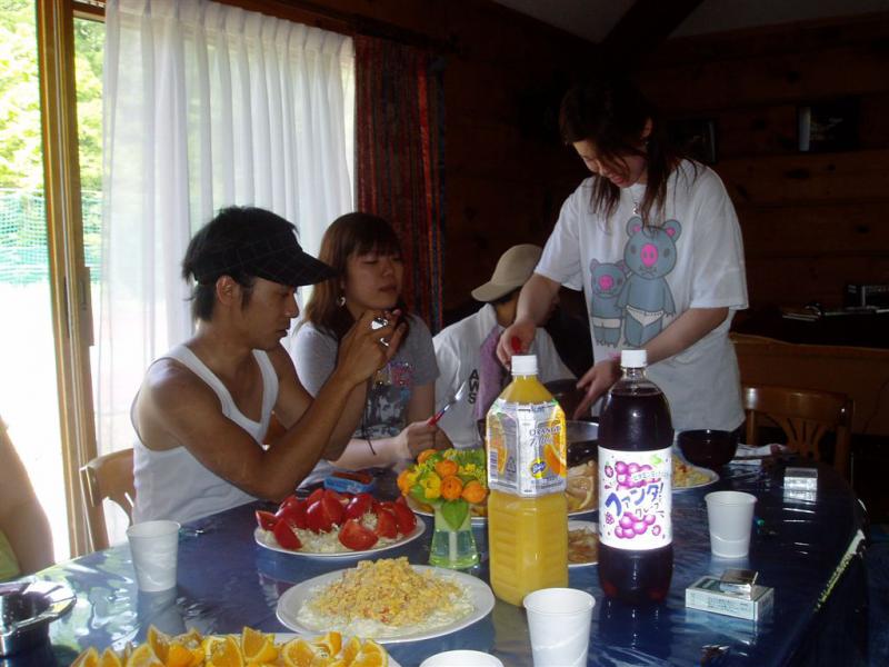 肝心のチキンラーメンが写ってないけど、みんなの目線がエリの手元のラーメンを