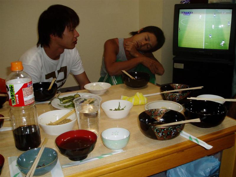 サッカー見ながらの食事。