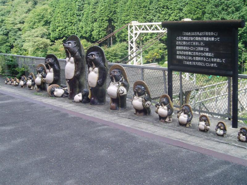 たっくさんのタヌキがお出迎え。
