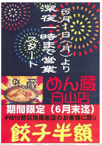 めん蔵 白山店では、6月1日(月)より