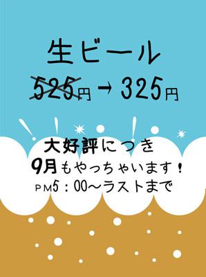 生ビール525円→325円!!