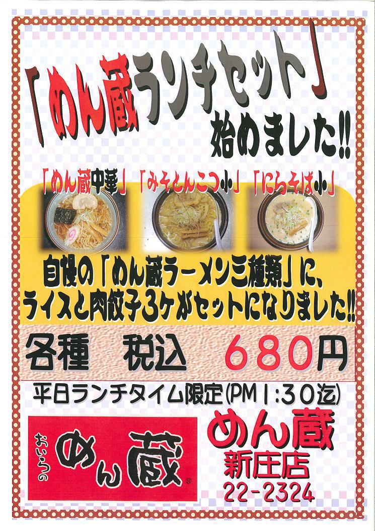 ▼平日『ランチセット』〜FCめん蔵新庄店