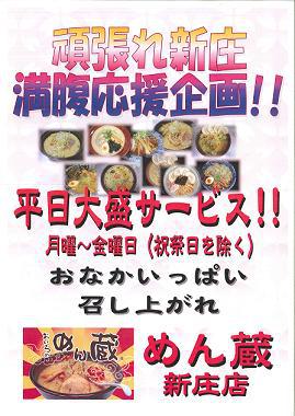 ▼満腹応援企画!! 平日大盛サービススタート!!